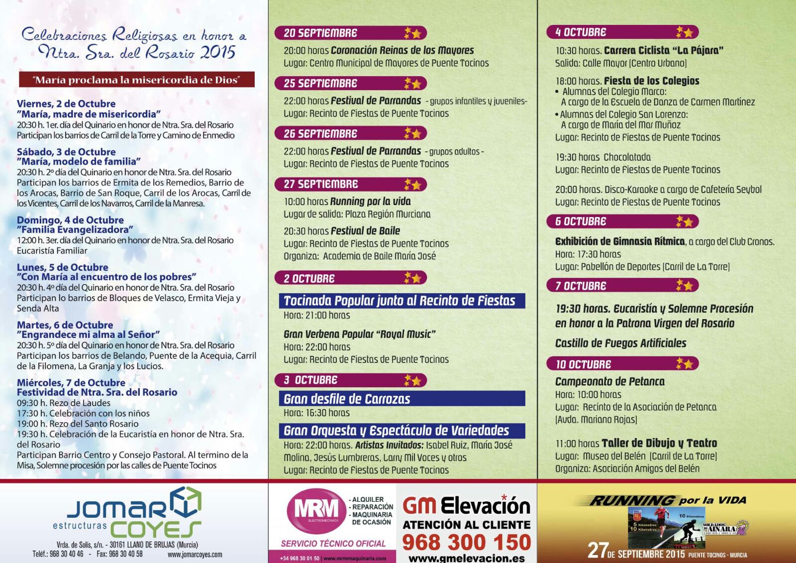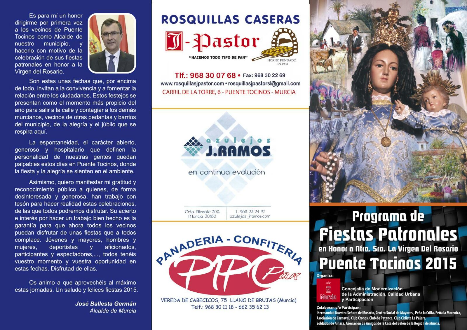 Esta semana han terminado las **Fiestas Patronales de Puente Tocinos 2015** que se han hecho gracias al trabajo de un grupo de asociaciones que decidieron al margen de partidos políticos organizar un programa de fiestas, presentarlo al Concejal responsable de Participación Ciudadana del equipo de gobierno del Ayuntamiento de Murcia, presidido por D. José Ballesta. Y esto ha sido así porque efectivamente **aún no se ha constituido la Junta Municipal** que en otros años ha coordinado el desarrollo de las Fiestas.